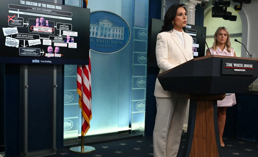 In a White House briefing, Tulsi Gabbard intensified allegations against the Obama administration, claiming a conspiracy to undermine the 2016 election through falsified intelligence on Russian interference.